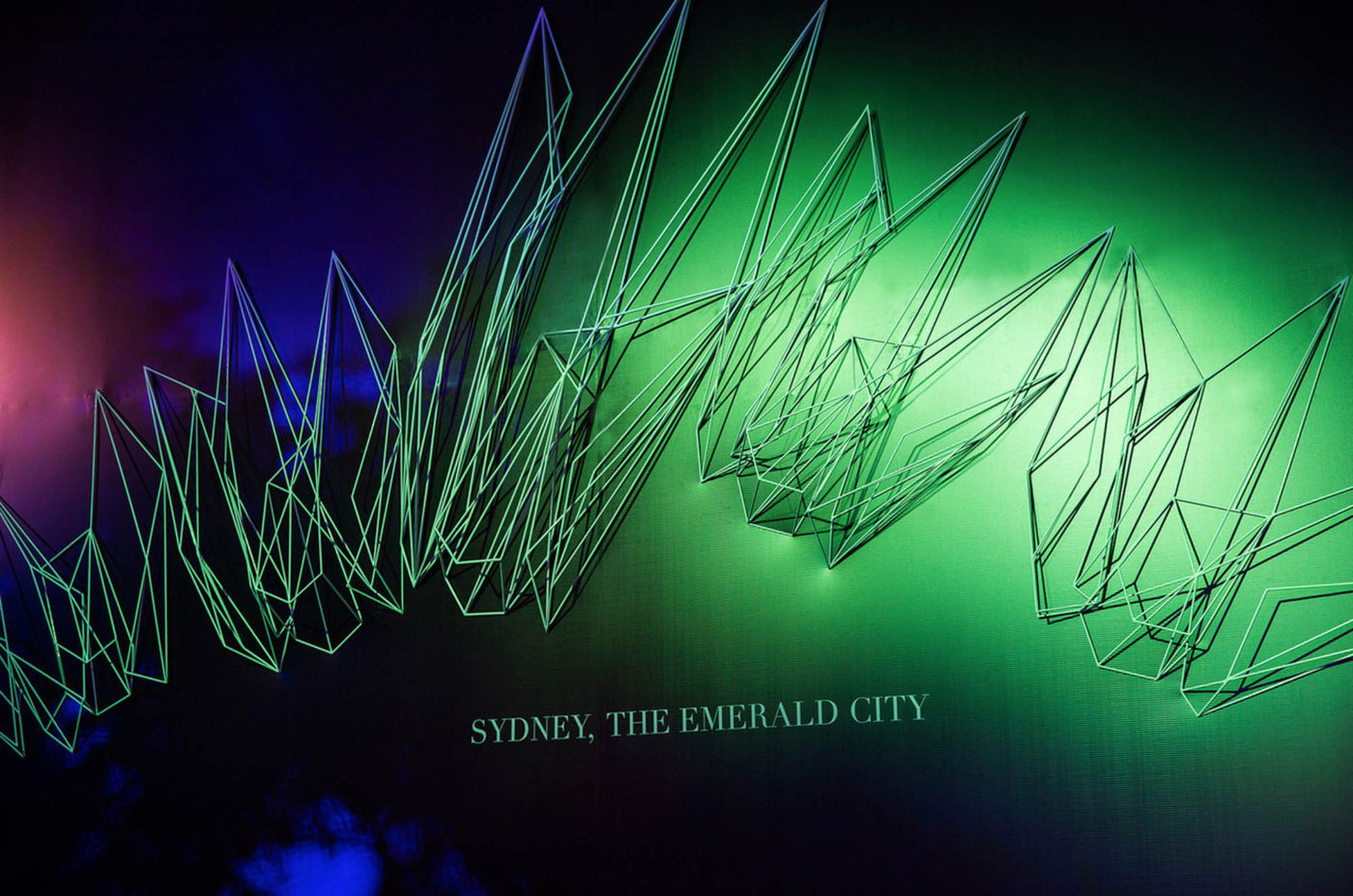 Entering from Circular Quay, guests were led into a magical emerald city through a stunning illuminated entranceway featuring the eight regions of NSW. To enhance the theme and promote Australia’s vibrant arts culture, BLE commissioned a magnificent steel sculpture, ‘The Emerald City’, from Bondi artist Dion Horstmans, plus giant paper chandeliers and paper fan Sydney artisan, Louise Paramor.