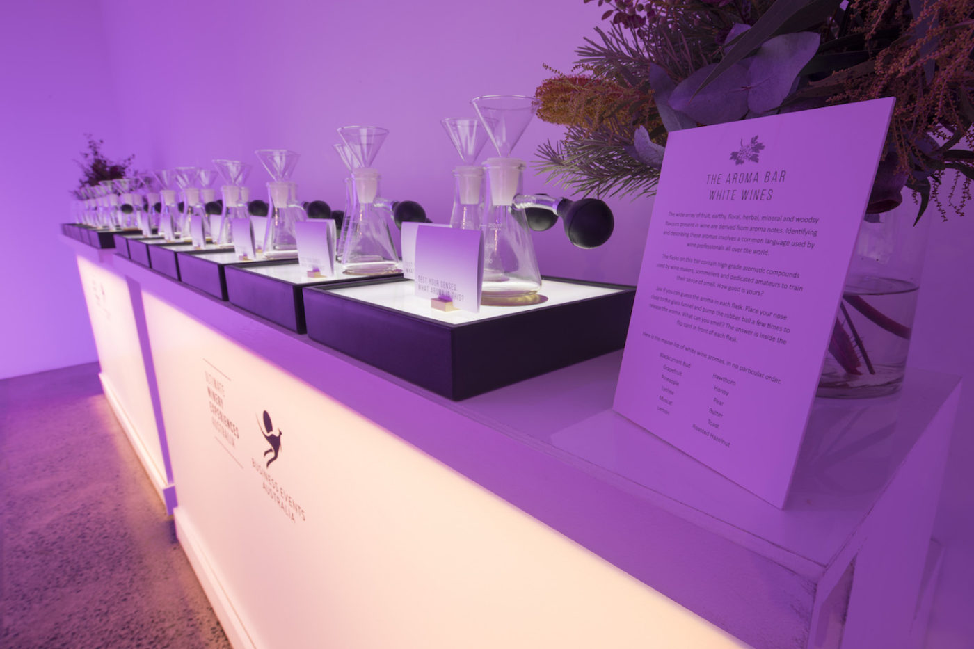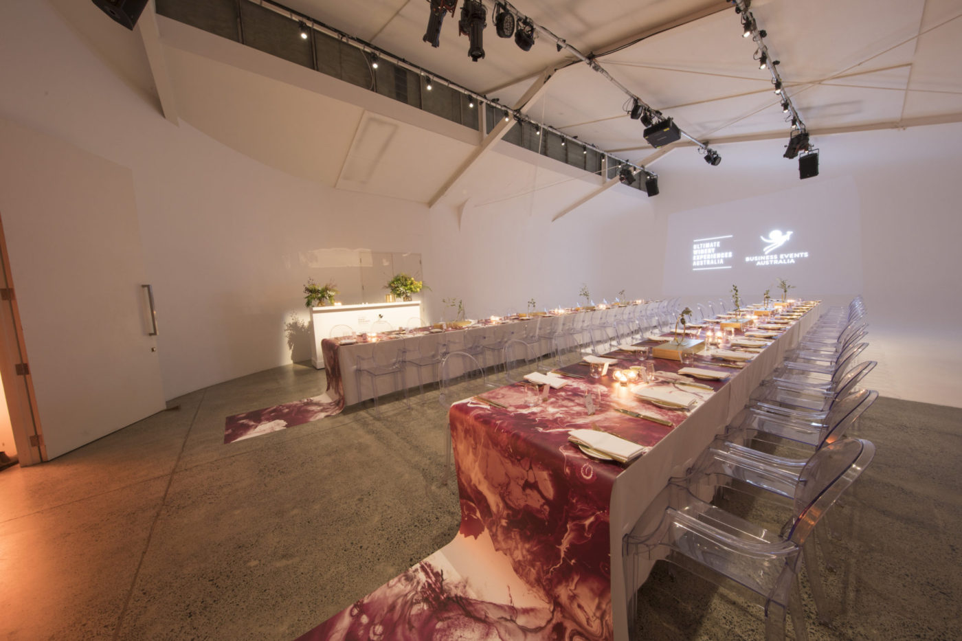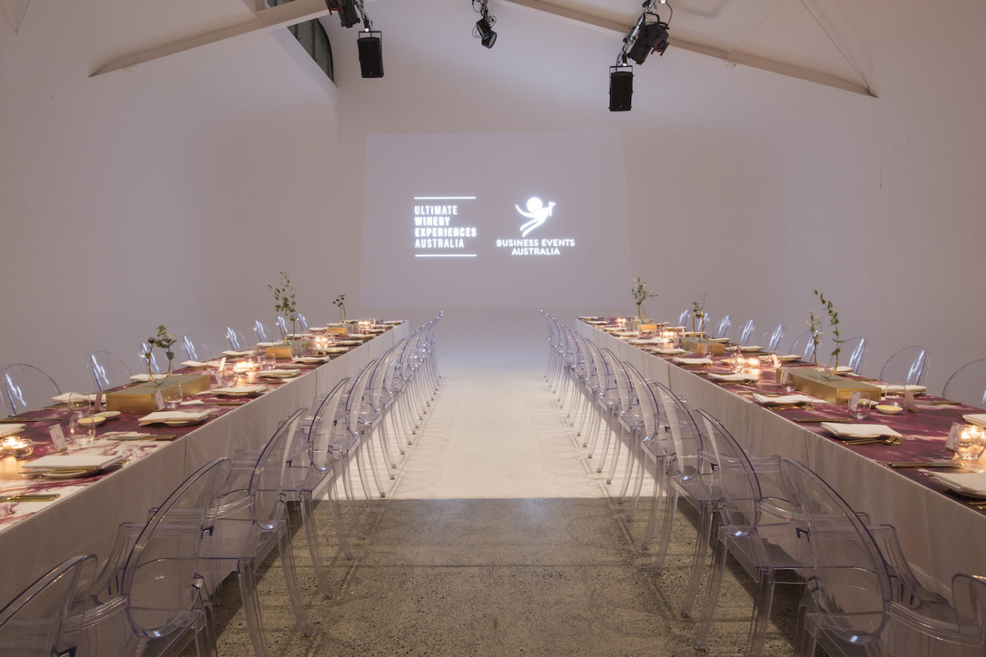 In conjunction with BEA, Ultimate Winery Experiences Australia (UWEA) and five premier Australian wineries, BLE crafted a highly bespoke event where wine, food, film, animation, music and exquisite styling all came together to tell a compelling story for our guests. Set in the minimal surroundings of a photography studio, BLE created an event journey in 5 stages, each featuring one of the participating wineries.