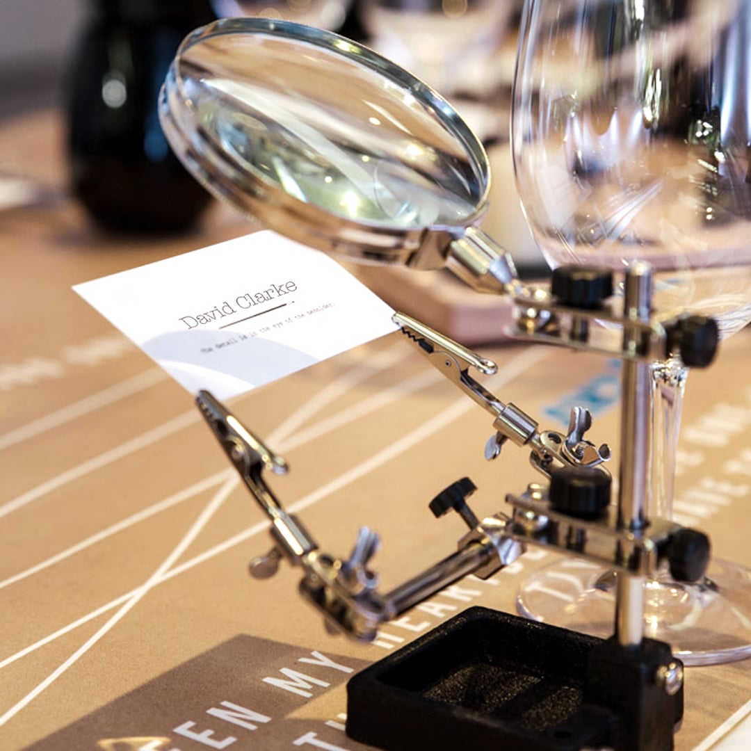 Guests uncovered their placecards through individual microscopes - adding intrigue and interaction.